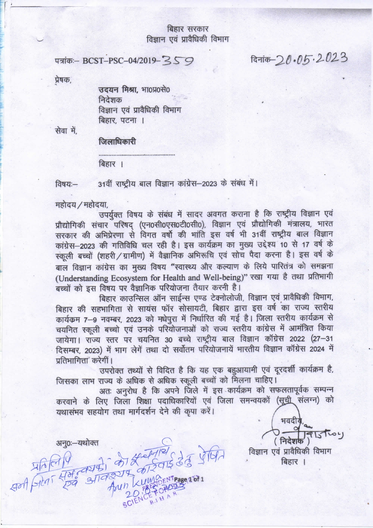 S & T Letter to all District Magistrate